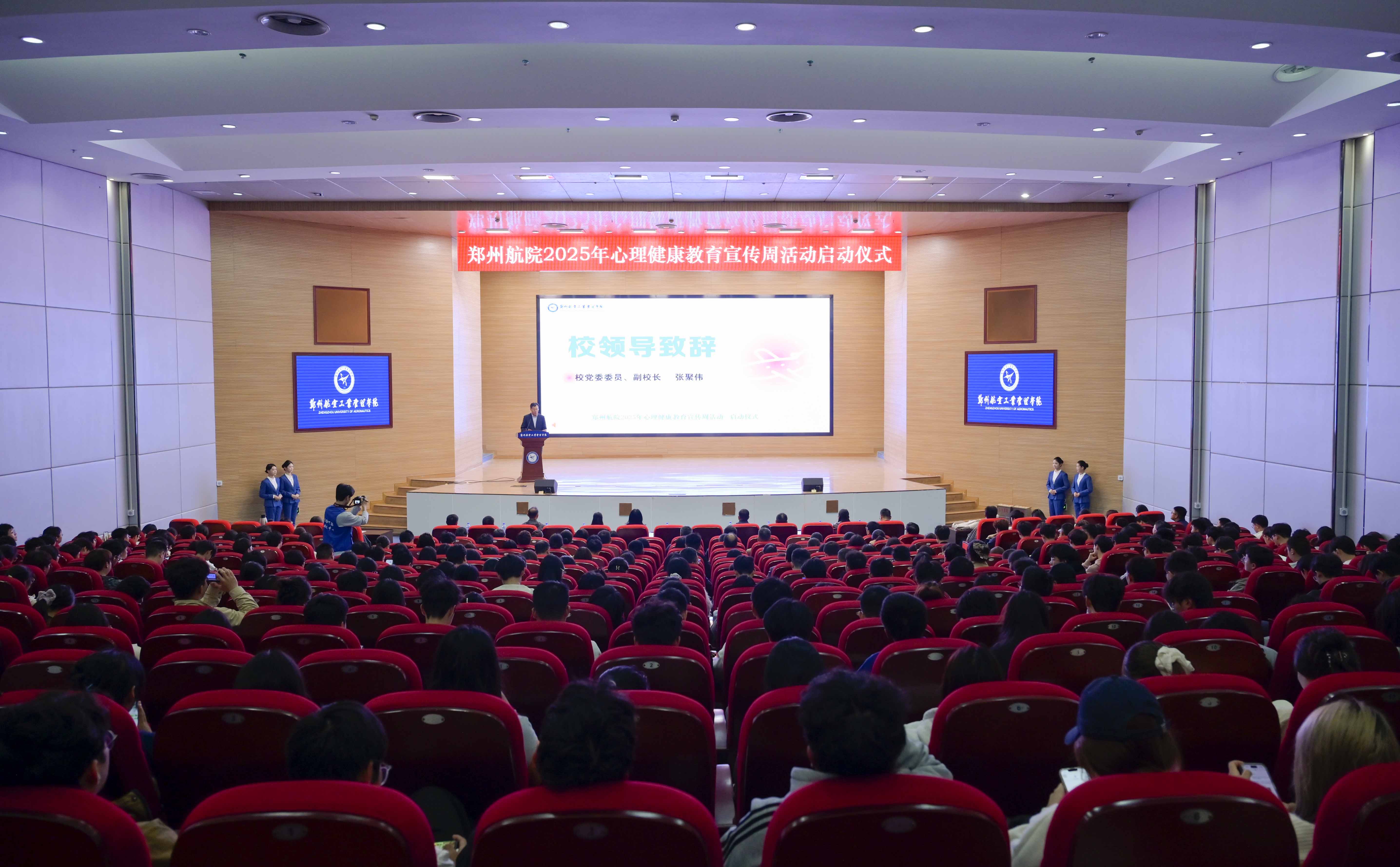张聚伟指出,心理健康是青年成长的重要基石,是学生成长成才的基本保障,全校要将心理健康工作置于育人关键位置,凝聚师生智慧与力量,切实提升心理育人实效,共筑学生健康成长根基。他强调,同学们要以“主人翁”的姿态,做自身心理健康的坚定守护者,主动培养乐观向上的阳光心态,让守护心灵健康成为新时代郑航青年的行动自觉与成长共识;老师们要以“引路人”的担当,做学生心灵成长的温暖陪伴者,不仅要注重自我关怀,更要以教育智慧引导学生心灵成长,用自身的能量照亮学生的青春征途;各部门要以“协同者”的自觉,做心理育人体系的积极构建者,合力推动心理健康教育融入课堂、深入宿舍、覆盖网络、走进师生,着力构建全员参与、全过程渗透、全方位覆盖的心理育人工作格局。