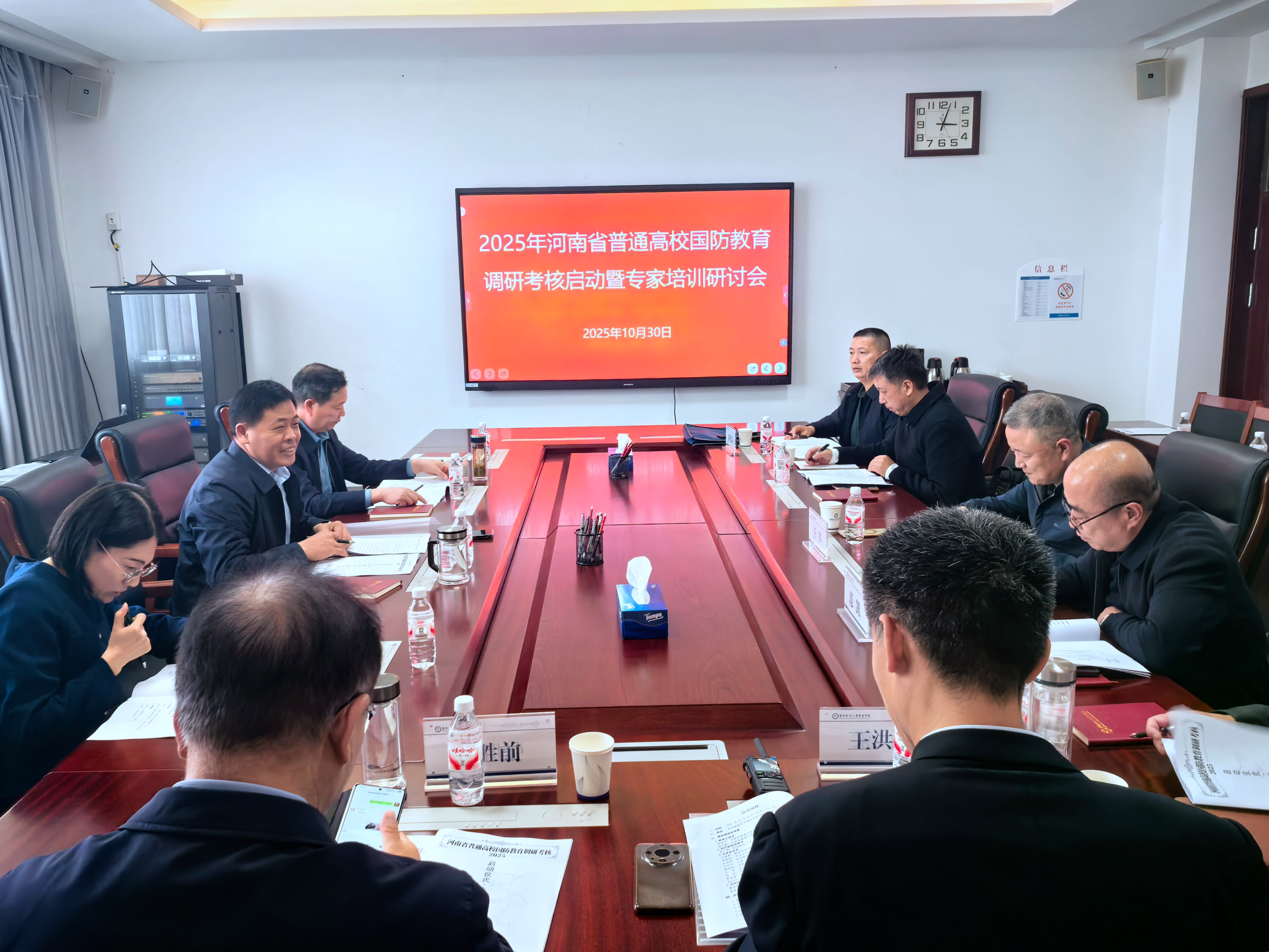 近日,河南省普通高校国防教育调研考核启动暨专家培训研讨会在我校召开。河南省教育厅体育卫生艺术教育处二级调研员袁均才、副校长李广锋出席会议。来自全省12所高校的人民武装部负责人及军事教学指导委员会专家代表参会交流。
